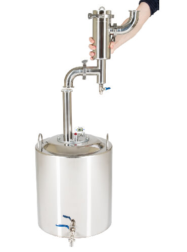 Заключительный этап очистки — сухопарник с краном для слива. На его стенках происходят повторная конденсация и переиспарения спирта. Одновременно с эффективной очисткой происходит и ароматизация напитка. (Попробуйте добавить в сухопарник цедру лимона или ароматные травы).